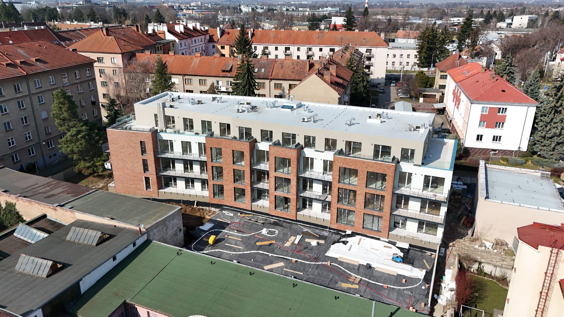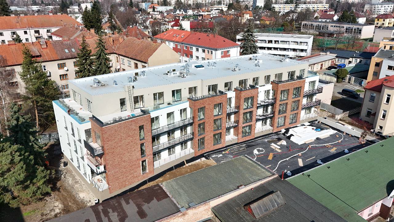 Na Rezidenci U Sadů jsou dokončeny obklady a dlažby do 5. NP a většina interiérů získává finální podobu. Probíhá osazování zařizovacích předmětů a dokončování exteriérů.