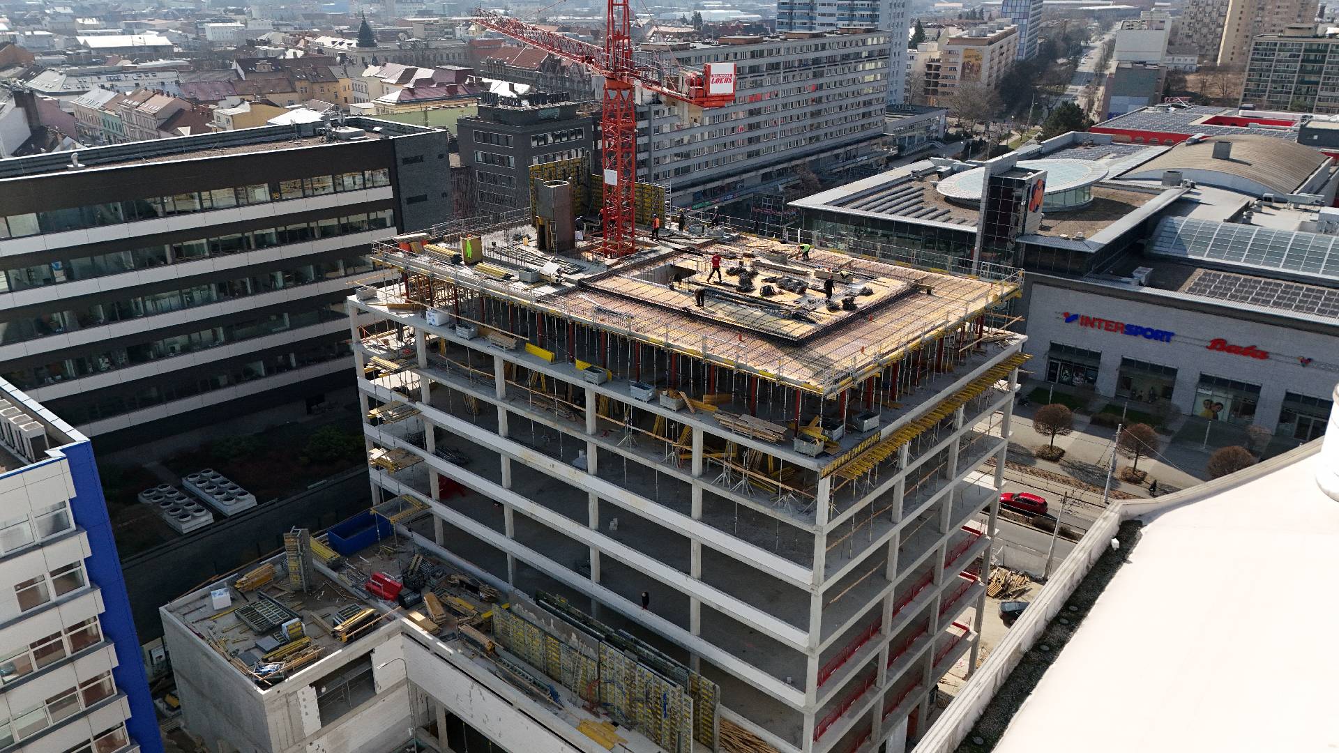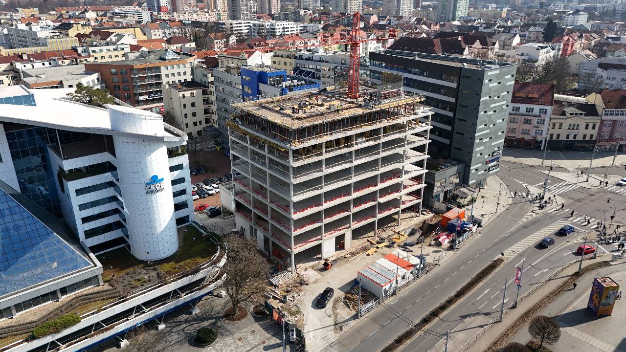 Na projektu Epiq Pardubice dokončujeme monolitickou konstrukci v 9. nadzemním podlaží. Paralelně pokračují technické rozvody a příprava fasády.