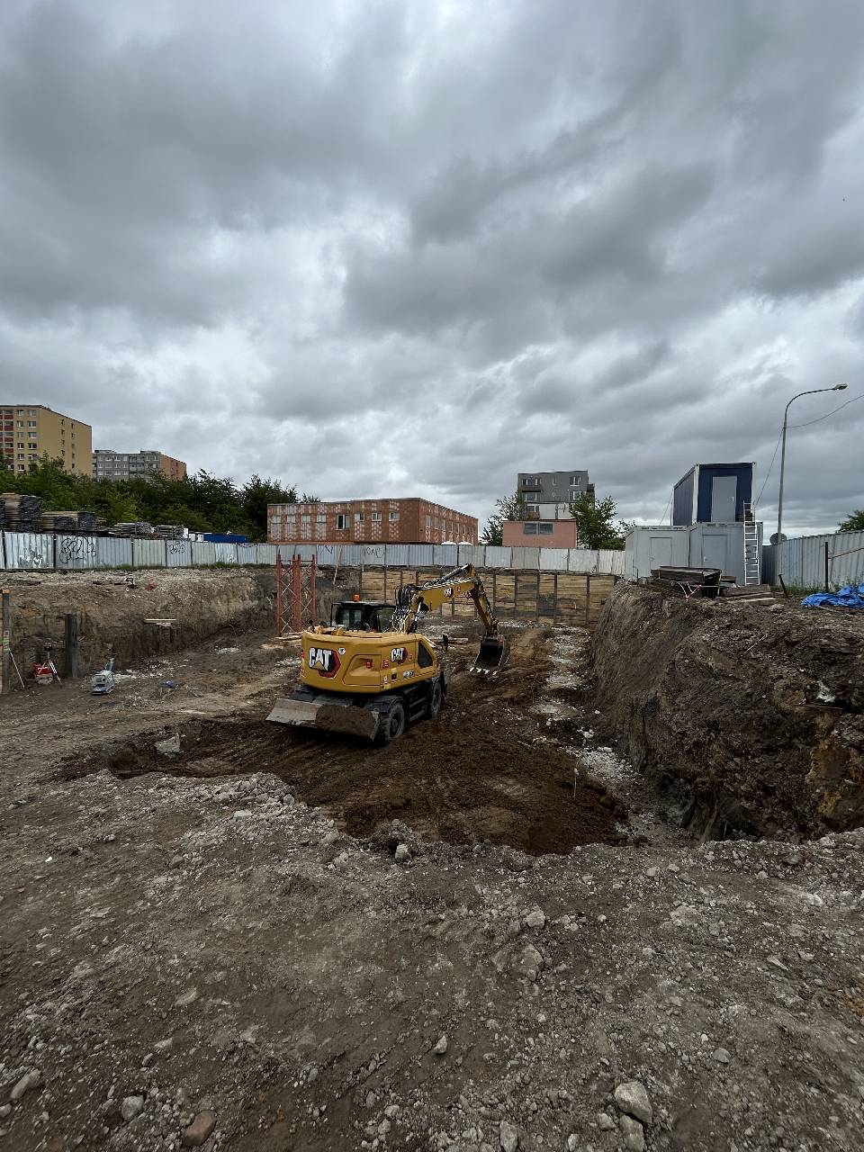 Nyní pracujeme na zemních pracích, které zahrnují provádění základových spár první etapy. Dále připravujeme realizaci přeložky horkovodu, podkladních betonů a základových desek.