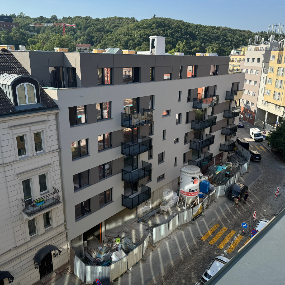 V Objektu A pokračují práce na obkladech, a terasy v nejvyšších patrech jsou připraveny na pokládku dlažby. V suterénu se zaměřujeme na dokončení technologických rozvodů a montáž dveří. Projekt bude připraven k nastěhování na konci tohoto roku.