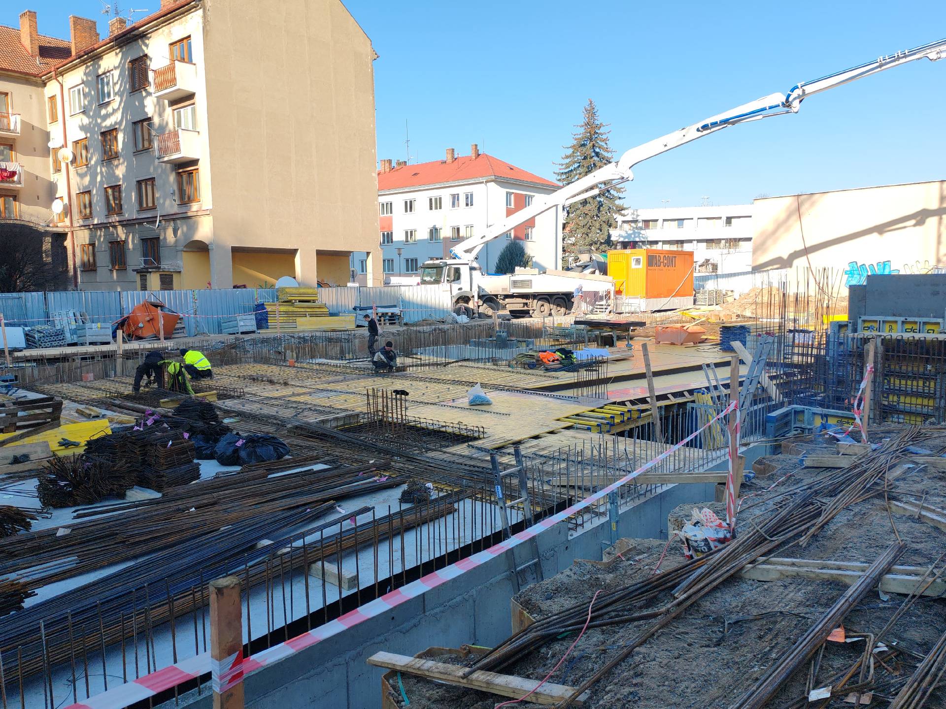 V Rezidenci U Sadů jsme úspěšně dokončili betonáž stropní desky, rampy, stěn a sloupů v 1. podzemním podlaží. Aktuálně máme zabetonovanou třetinu stropu 1.PP a zároveň postupujeme se stavbou stěn v 1. nadzemním podlaží. V nejbližších týdnech se zaměříme na dokončení stropu a dalších konstrukcí 1.NP.