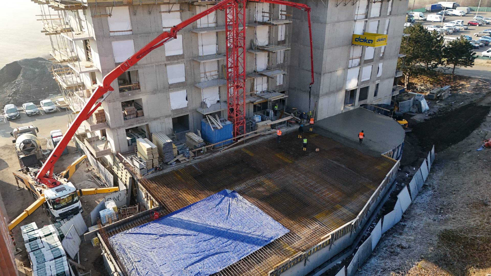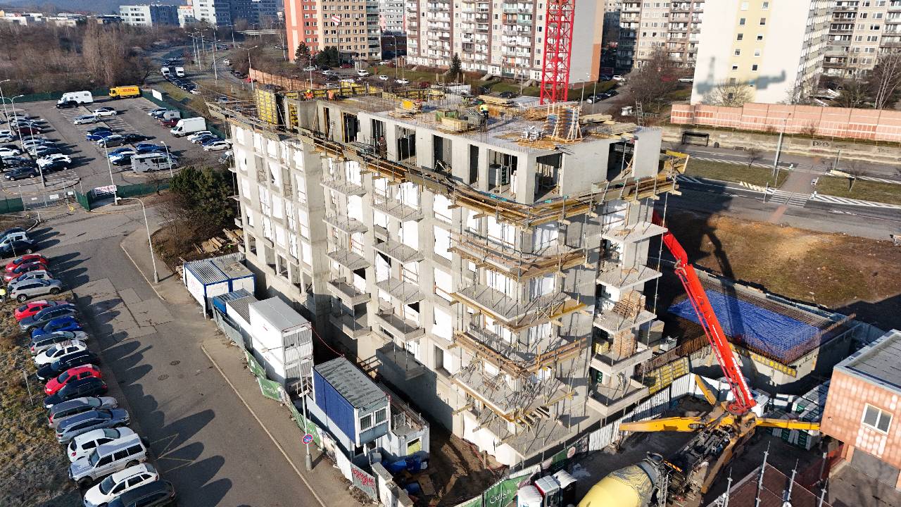 Na stavbě Garden Living jsme úspěšně dokončili betonáž stropu 1.PP garáží a pokračujeme s výstavbou stěn v 6.NP.