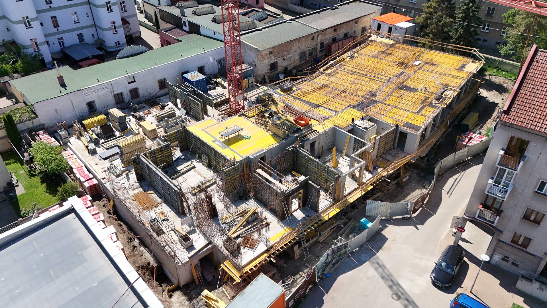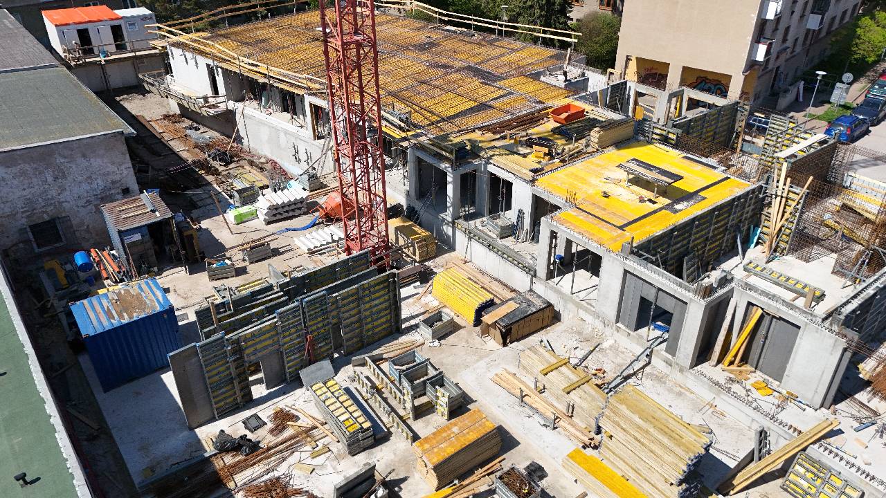 Paralelně probíhají vyzdívky sklepních prostor a technických místností, které jsou klíčové pro budoucí technické zázemí budovy. V návaznosti na tyto práce jsme nově zahájili vyzdívky třetího nadzemního podlaží, čímž se přesouváme do další konstrukční fáze projektu.