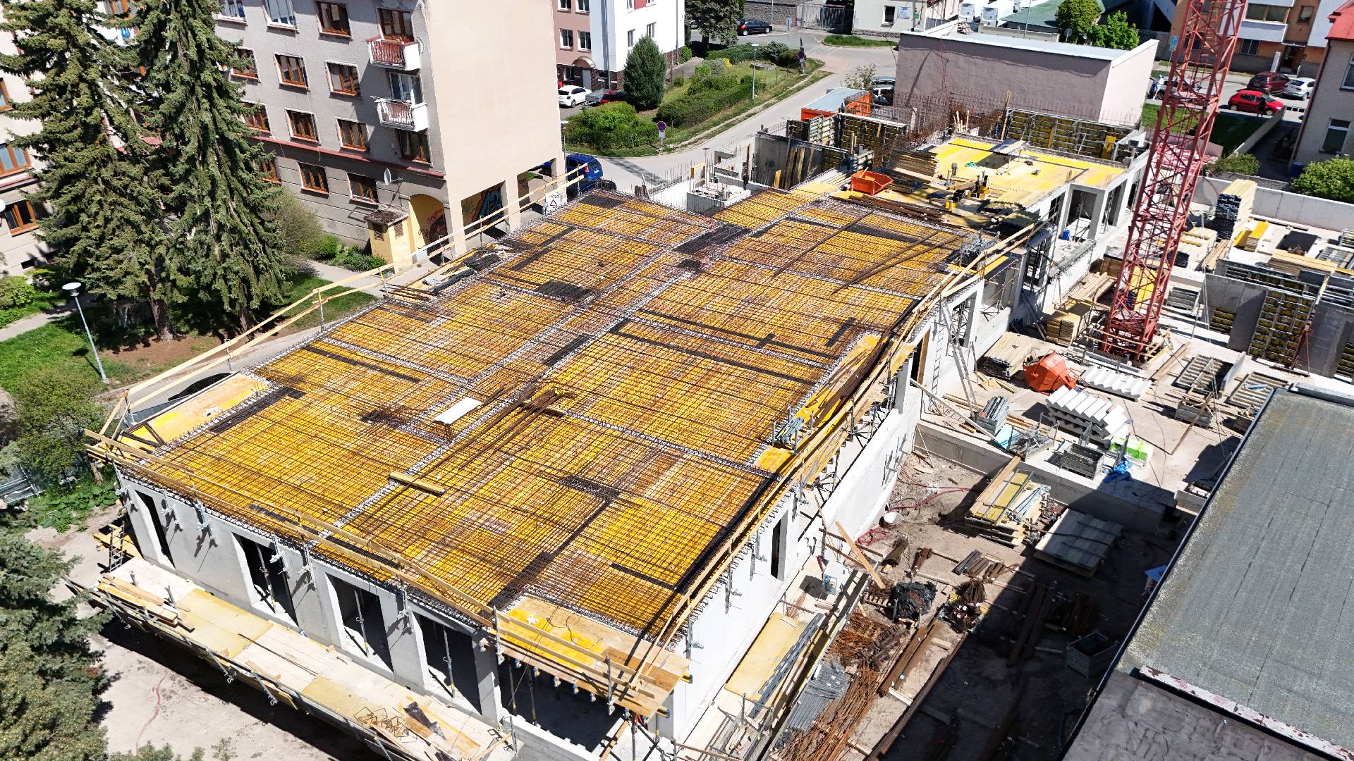 Na projektu Rezidence U Sadů v Hradci Králové pokračujeme v souladu s harmonogramem. Dokončili jsme stropní desku nad 2. nadzemním podlažím a zahájili vyzdívky 3. NP.