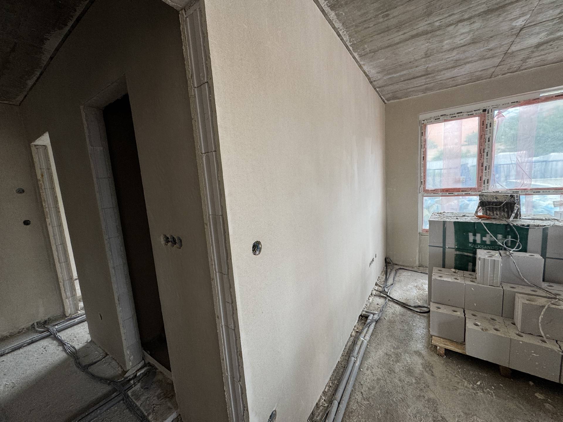 Na západní a částečně také na severní a jižní fasádě je již naneseno lepidlo a připraveny jsou kastlíky pro venkovní žaluzie. V nejbližších týdnech očekáváme nástup obkladačů, kteří začnou s obklady v koupelnách.