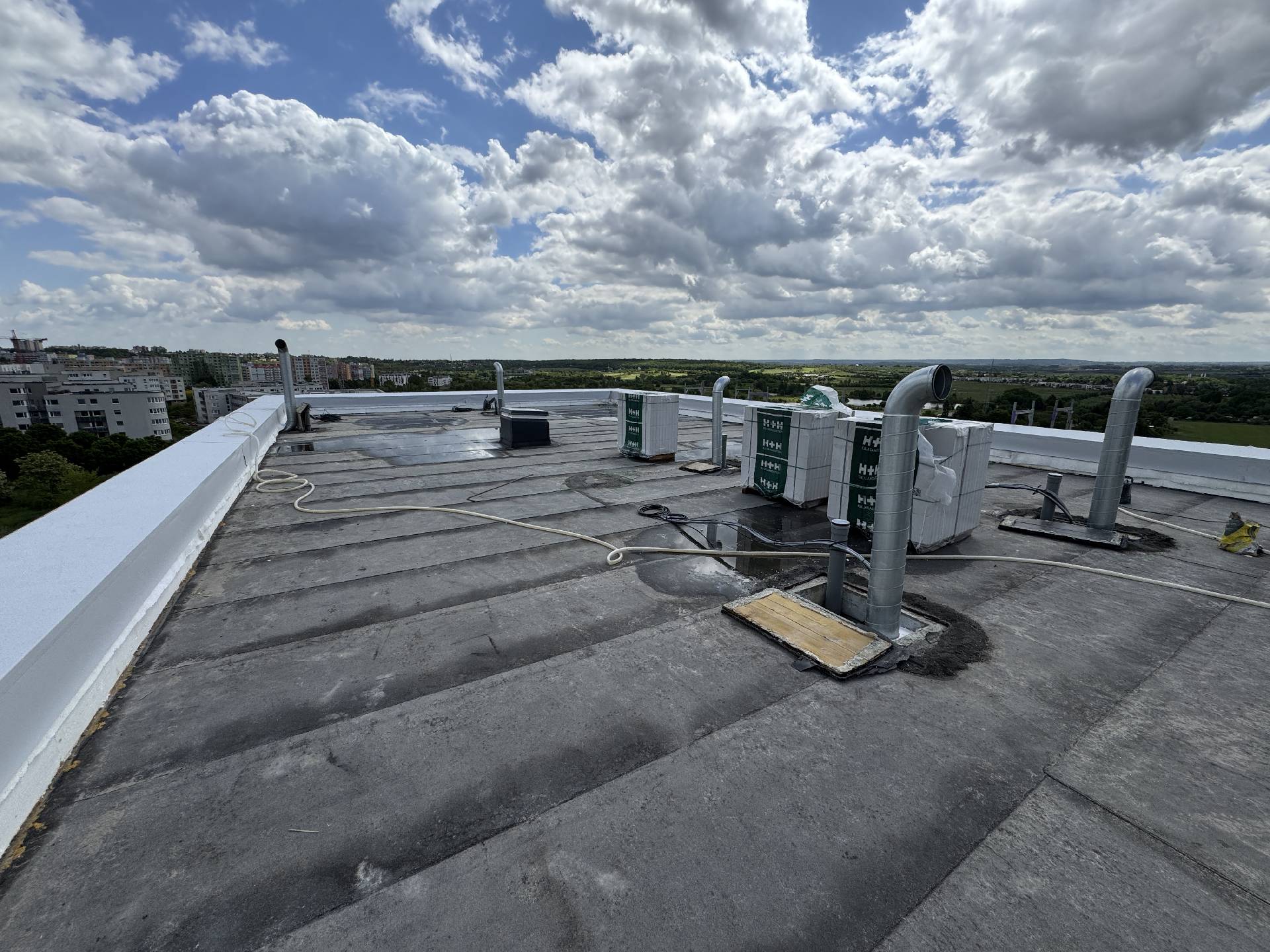 V 1. a 2. nadzemním podlaží aktuálně probíhá stříkání omítek. Mezitím v posledním – 8. nadzemním podlaží – pokračujeme s rozvody elektroinstalací a vodoinstalací. Pracujeme také na prostupech technických zařízení budovy směrem ke střeše, což nám umožní na konci měsíce zahájit skladbu střešního pláště.